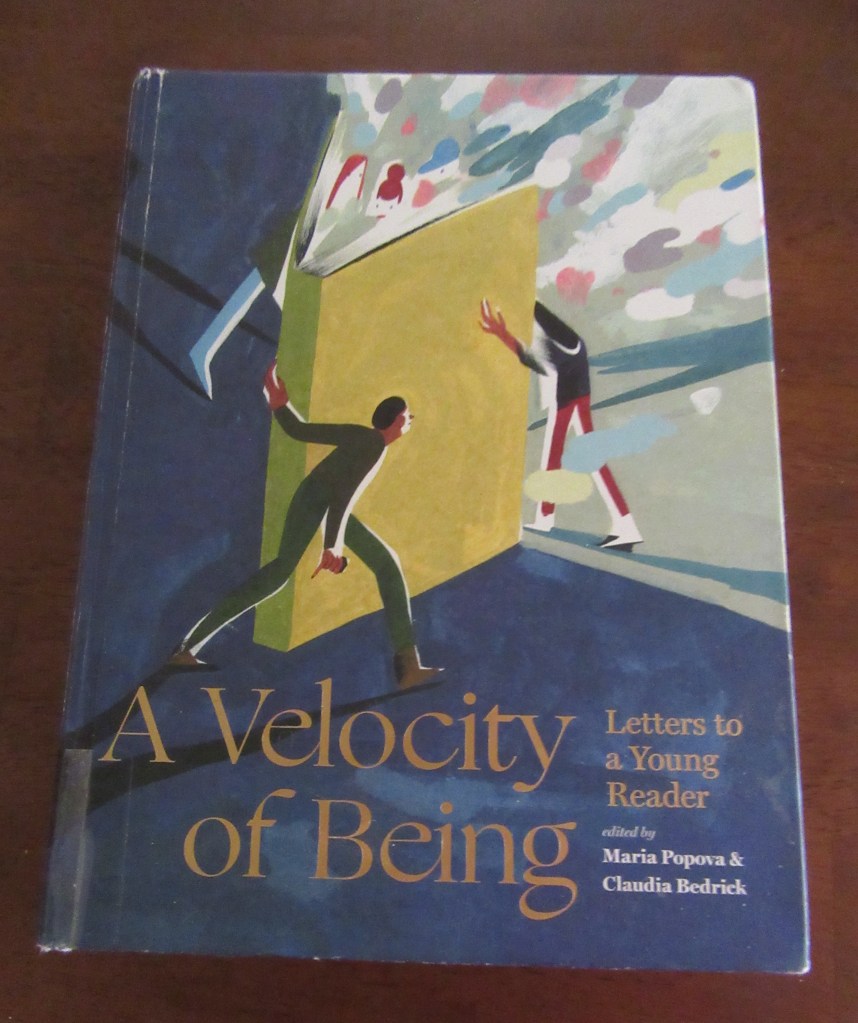 And that this week I’ve been reading A Velocity of Being: Letters to Young Readers, edited by Maria Popova & Claudia Bedrick. The editors compiled 121 letters from “scientists, musicians, artists, philosophers, composers, poets, actors, a 98-year-old Holocaust survivor, Italy’s first woman in space, and many more remarkable humans whose splendor of spirit cannot be contained in the shorthand descriptors we often use to condense a person’s character and cultural contributions.” Each letter is paired with an illustration to “bring it to life visually.”